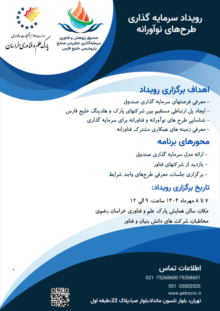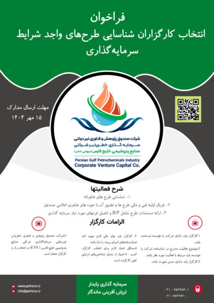 صندوق سرمایهگذاری خطرپذیر همواره در حال برگزاری رویدادهای تخصصی و کارگاههای آموزشی در حوزه فناوریهای پتروشیمی است. این رویدادها شامل همایشهای نوآوری، مسابقات ایدهپردازی و نمایشگاههای تخصصی میشود که با حضور برترین متخصصان و شرکتهای فعال در این صنعت برگزار میگردد. برای اطلاع از رویدادهای جاری و آتی، میتوانید به بخش رویدادهای سایت مراجعه نمایید. فرصتهای شبکهسازی و همکاریهای تجاری متعددی در این رویدادها برای شرکتکنندگان فراهم شده است. حضور برای کلیه علاقهمندان و فعالان حوزه پتروشیمی آزاد میباشد. جهت دانلود فایل مربوط به این رویداد برروی عکس کلیک کنید.